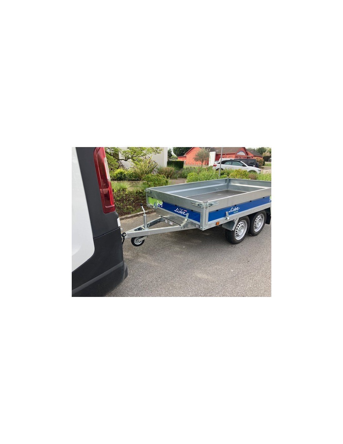 Remorque Lider avec plusieurs PTAC possible en option – 500 – 600 – 650 – 750 kg.  Remorque roues dessous avec deux essieux de 750 Kg